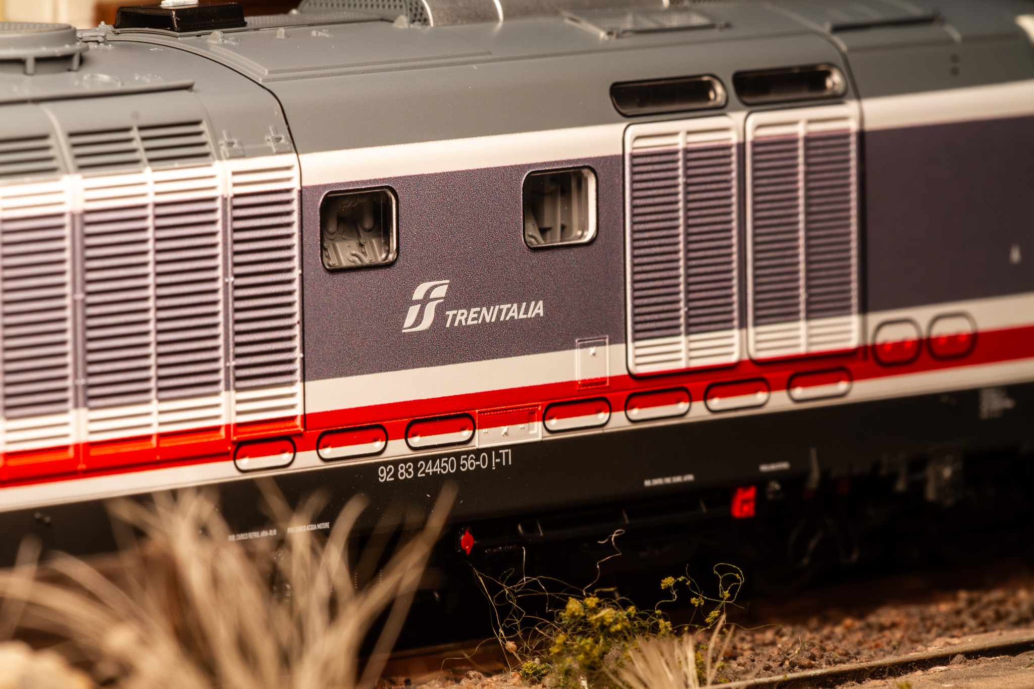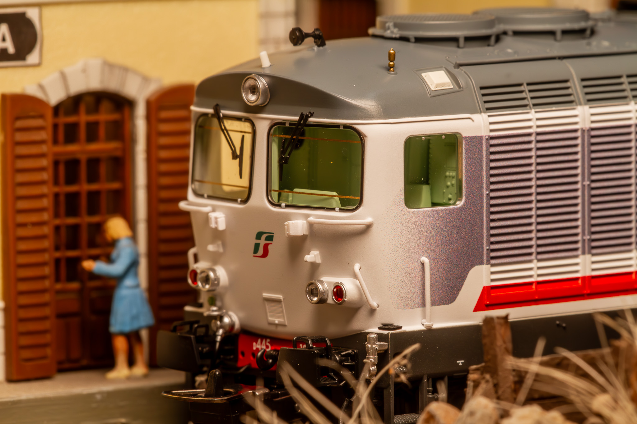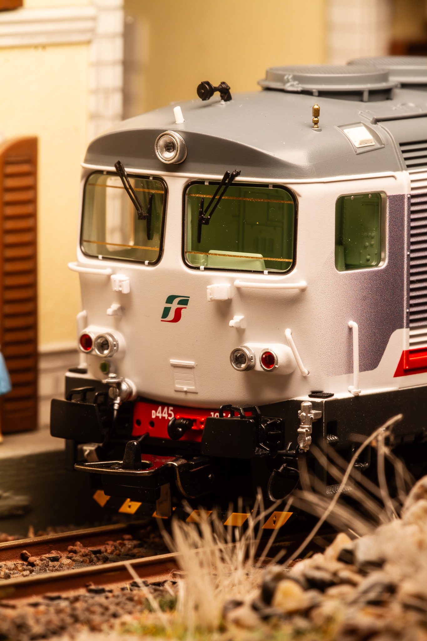 Con la nuova versione del D.445 FS, PIKO presenta un genio universale italiano in scala 1:87! Il modello è disponibile in una moderna livrea IC bianca con accenti rossi. Visivamente, le macchine convincono per la forma ben riuscita, gli interni dettagliati e numerosi dettagli, come le ventole sotto le griglie finemente incise. Tecnicamente, il design PIKO è al passo con i tempi e dispone di una moderna interfaccia PluX22 per una facile digitalizzazione ed è predisposto per l'aggiunta del suono.